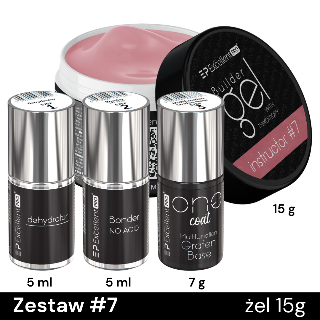 Zestaw z żelem Instructor #7 - 15g – Idealne Przygotowanie i Budowa Paznokcia